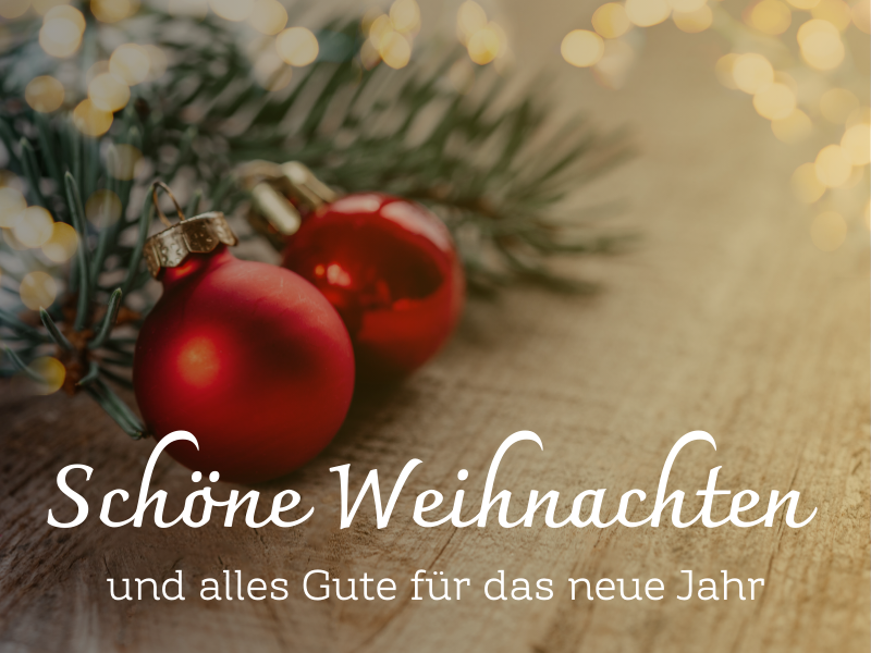 Wir wünschen Ihnen und Ihren Liebsten eine friedvolle Weihnachtszeit und für das neue Jahr vor allem Gesundheit, Zuversicht und viele schöne Momente.
