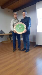 Die Schützenscheibe, die der amtierende Schützenkönig Gernot Hödl stiftete, wurde an Ralf Wallenwein, der dieses Jahr das rote Blattl gewann, übergeben.